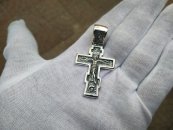 Изображено: Распятие Христово. Молитва "Да воскреснет Бог". Православный крест.Длина: 4.3 см